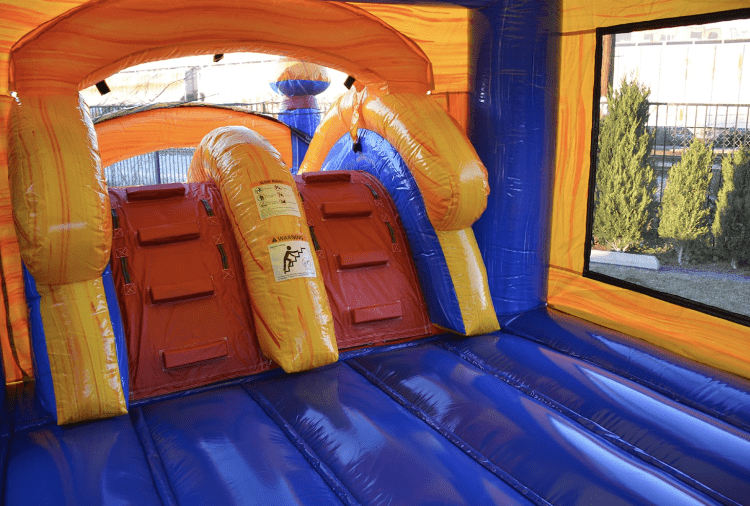 - OCCUPANCY: A maximum of 5-6 kids of equal size at one time for bounce houses, and 1 person at a time for slides is what most inflatable manufacturers recommend.