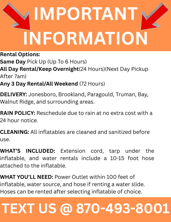 - Water source and water hose if renting a water slide
